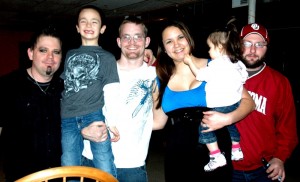 Pictures from left to right are: Shannon Spears, Bryan Ott, Claressa Ott and Kody McCabe along with the couple's two children