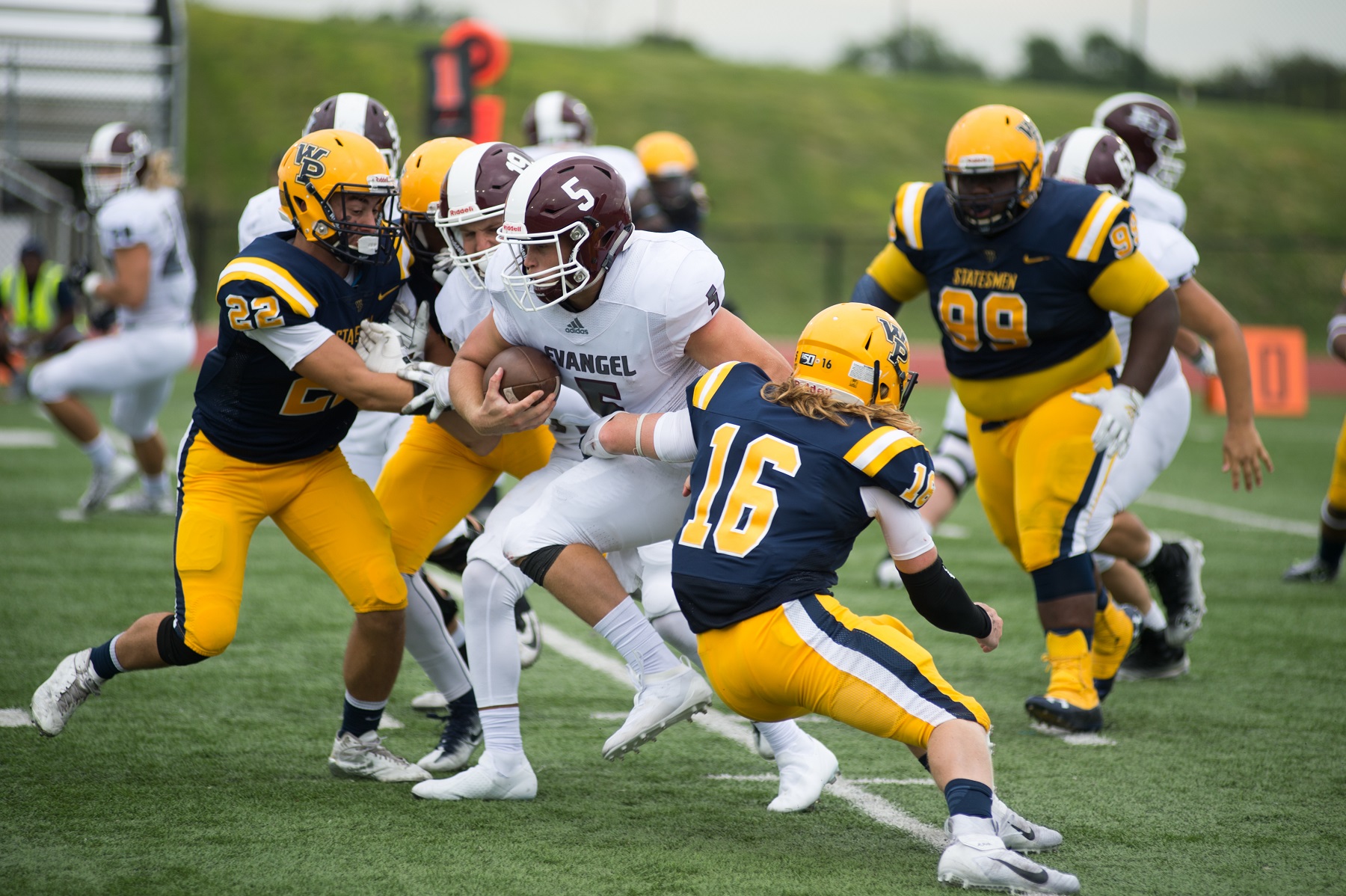 Oskaloosa–The William Penn football team looked every bit the equal to #18 Evangel during the first half of Saturday’s season opener, but could not sustain that level of play the entire afternoon in a 19-7 Heart of America Athletic Conference North-South Crossover setback.