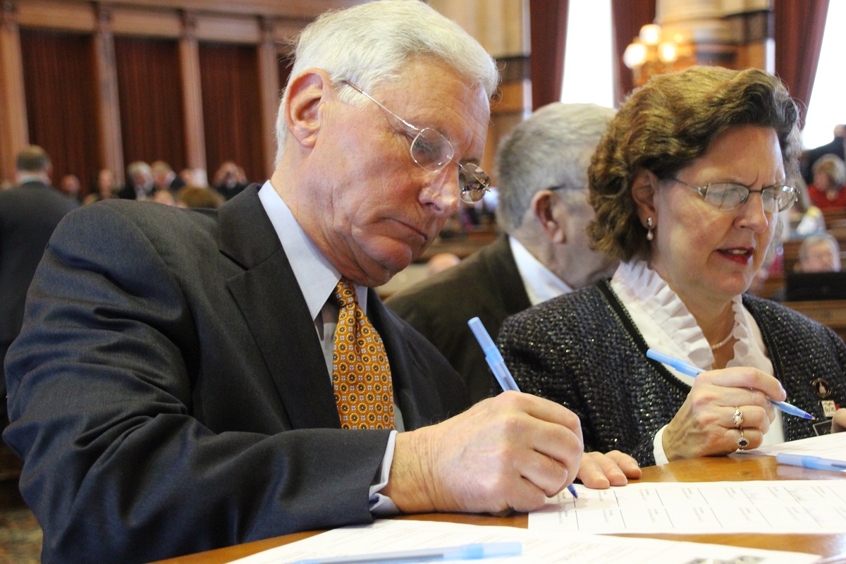 (DES MOINES)— Rep. Guy Vander Linden (R-Oskaloosa) is seen here signing the oath of office in the Iowa House chamber as the 86th General Assembly kicked off Monday at the Capitol.
