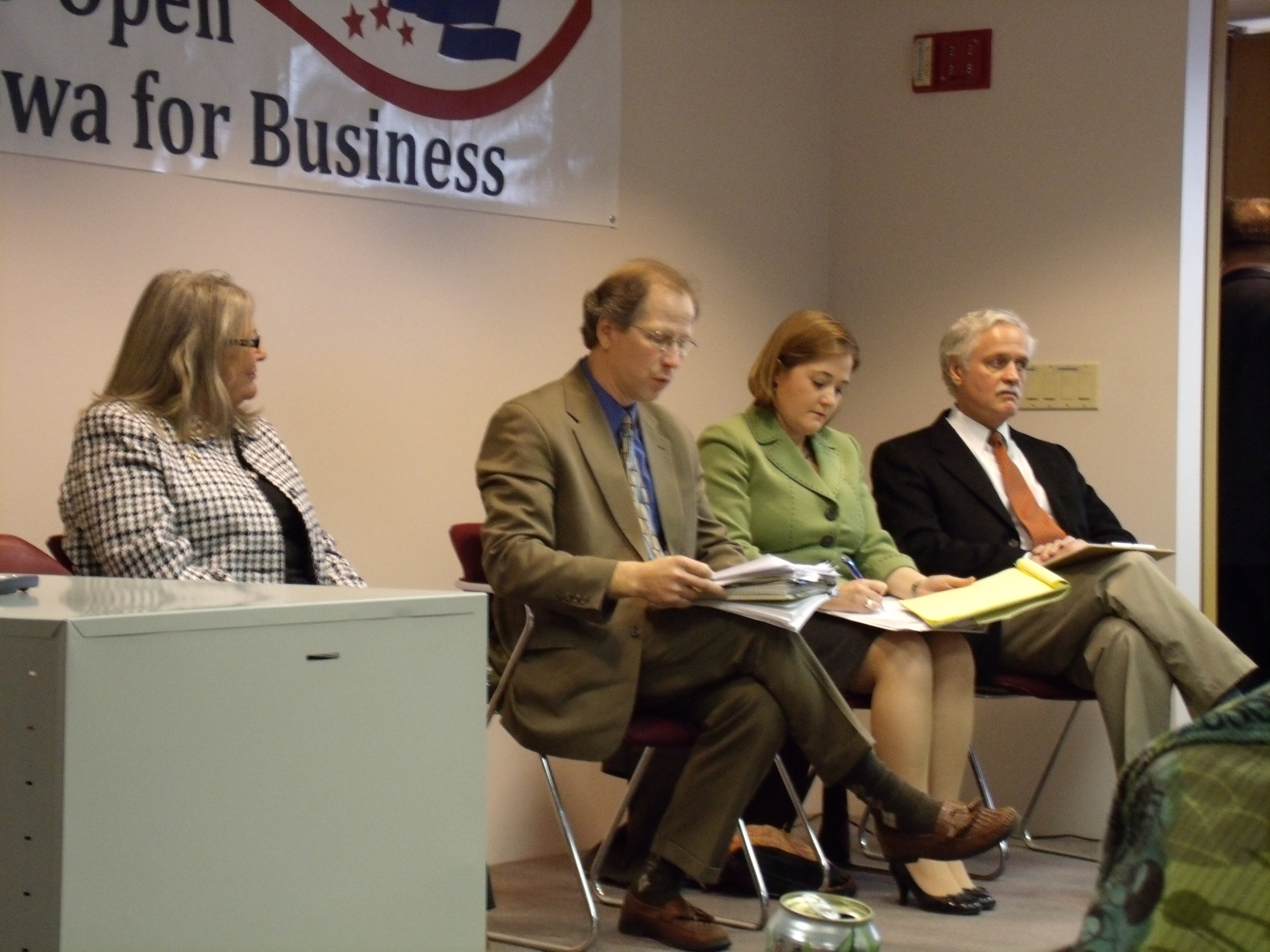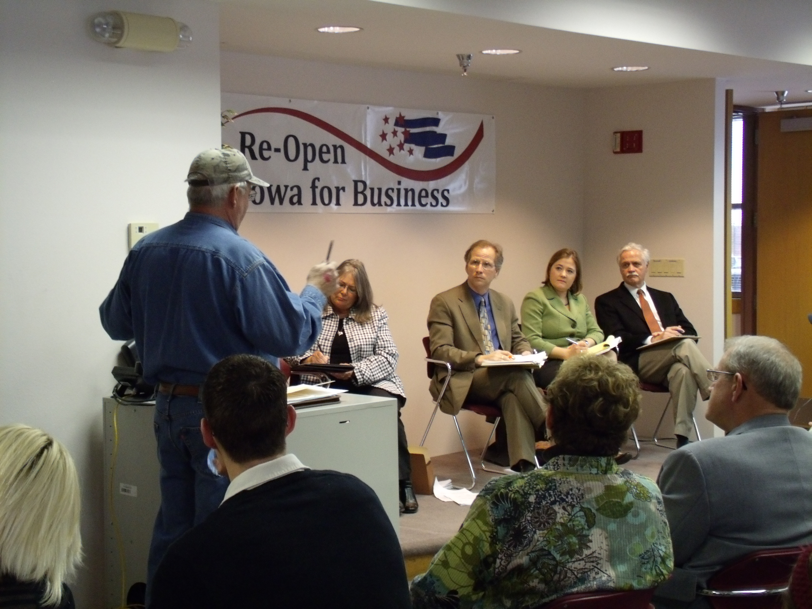 Those on hand were Republican’s Senator Merlin Bartz (R) of Iowa Senate District 6, Senator Paul McKinley (R) of Iowa Senate District 36, and Representative Dawn Pettengill (R) of Iowa House District 39. Also on hand, but not part of the official forum, were Senator Tom Rielly (D) of Iowa Senate District 38, Representative Betty De Boef (R) of Iowa House District 76, and Senator Brad Zaun of Iowa Senate District 32. Representative Guy Vander Linden of Iowa House District 75 was unable to attend due to illness.