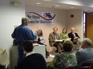 After the introductions, and familiarization with the rules for the meeting, those that had signed up to ask a question of the panel were allowed to do so in the order they had signed up. Senator Bartz said, “The purpose of the meeting is not for deregulating, but to find rules that make it difficult for Iowa businesses to operate.”