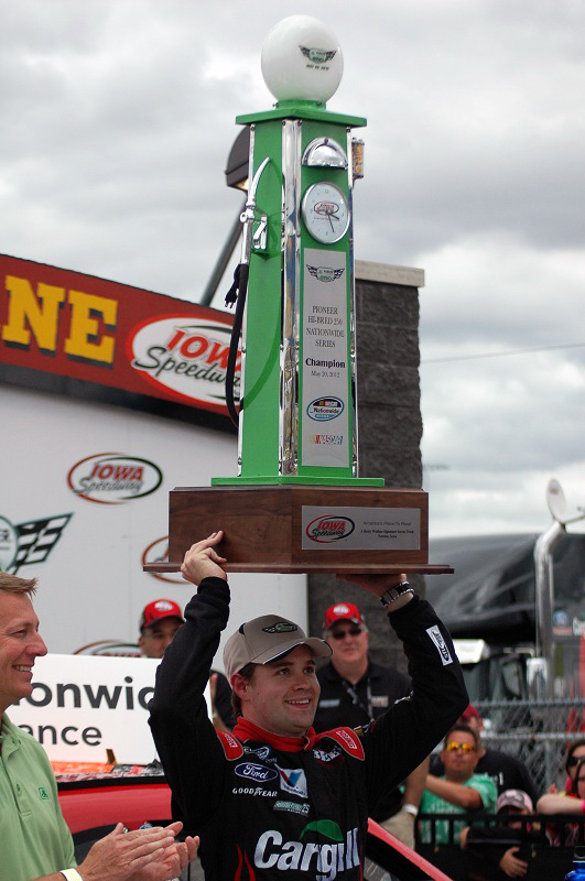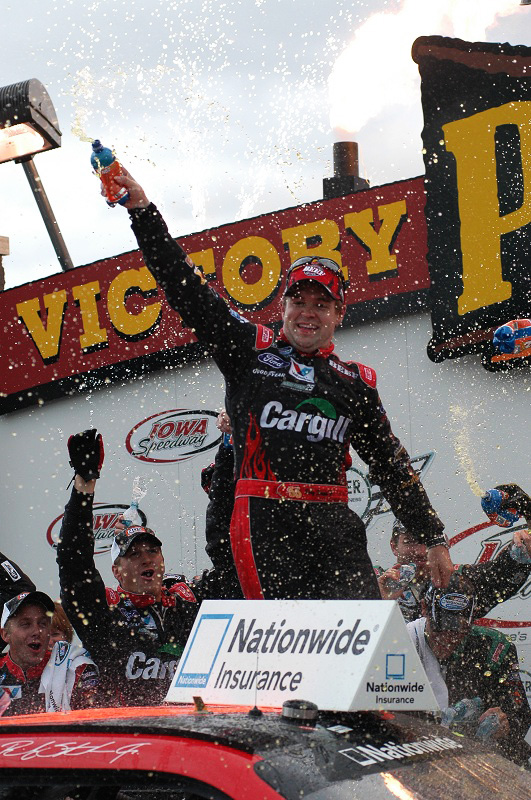 Ricky Stenhouse Jr. celebrates his third victory in a row at the Iowa Speedway Sunday. (photo by Ginger Allsup)