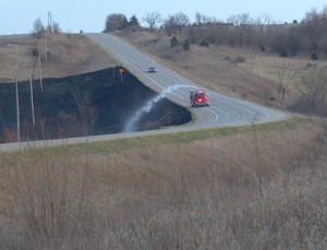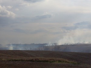 This field fire just north of Searsboro continues to burn Sunday afternoon, for a time causing the closure of State Highway 146 (photo by Jeff Hasley)