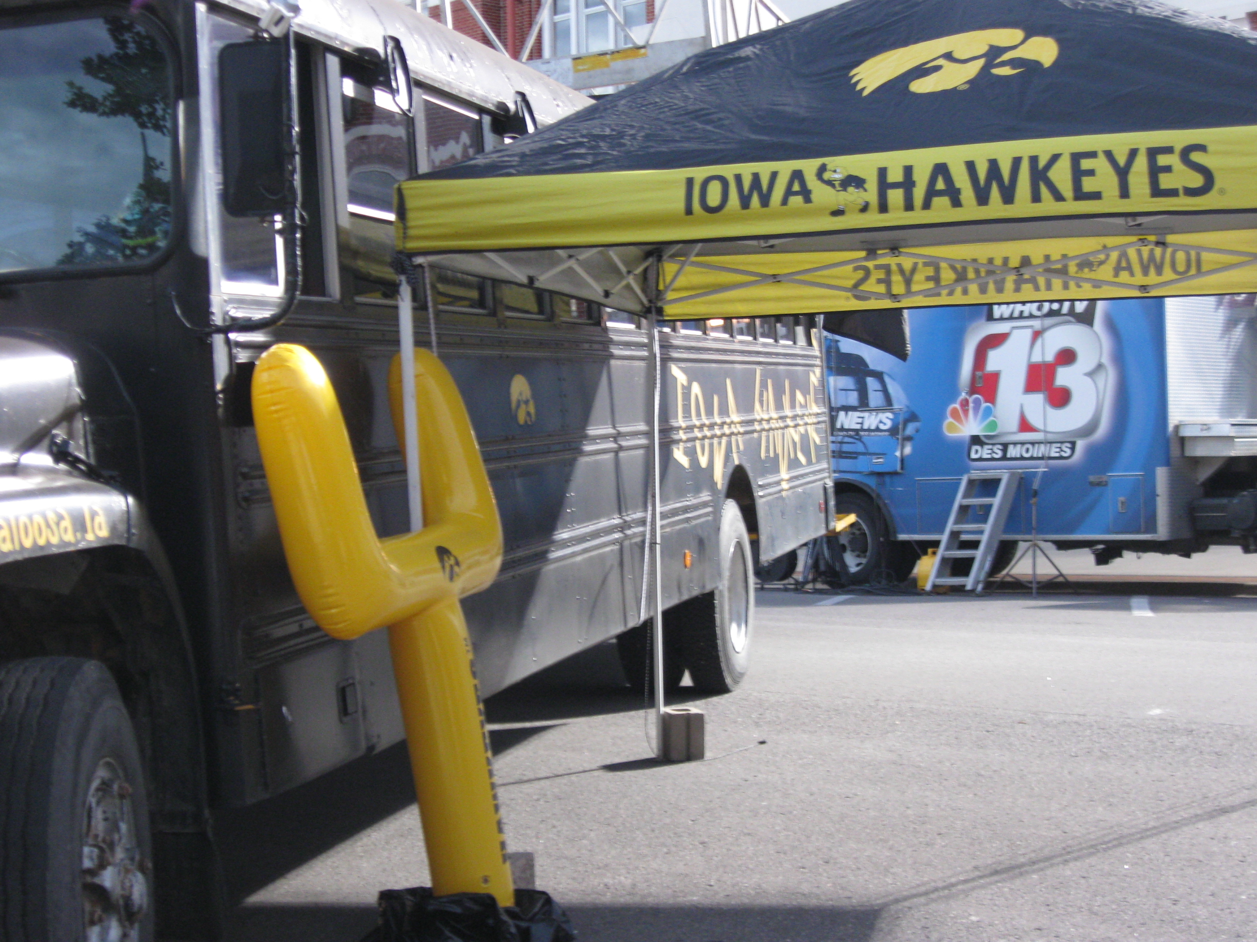 Channel 13’s RV-TV made its fourth stop of the week in Oskaloosa Thursday. The Channel 13 sports team occupied the east side of the city square. By 5 pm last night, a large crowd of Hawkeye and Cyclone fans had gathered all of whom were hoping to be put on TV. By 6:30 pm, the crowd had diminished but not without the memories they had made. The Channel 13 sports was prepping for the 10:00 show which would be delayed due to the NFL game being shown on NBC.