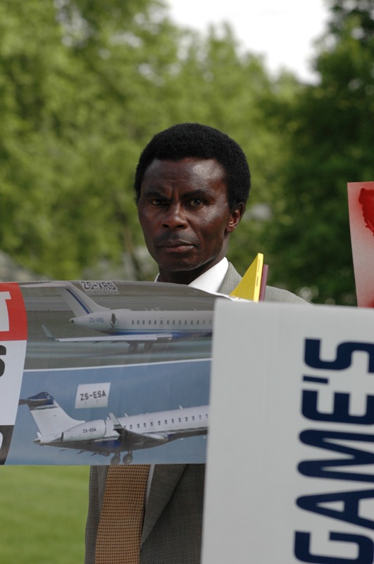 This is one of over 25 protestors at William Penn University on Saturday, voicing their opinion about President Kagame's visit and his honorary doctorate. (photo by Ken Allsup)