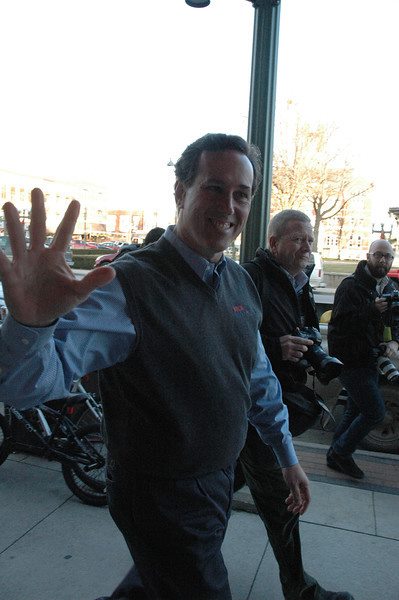 Oskaloosa, Iowa – With the normal caravan of diesel buses and the large staff’s of advanced people that are part of many presidential candidates, Rick Santorum makes a modest entrance.