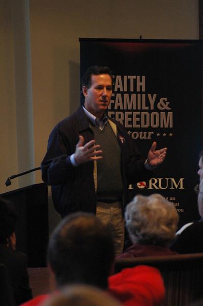 Rick Santorum talks with residents in Pella, Iowa on Tuesday