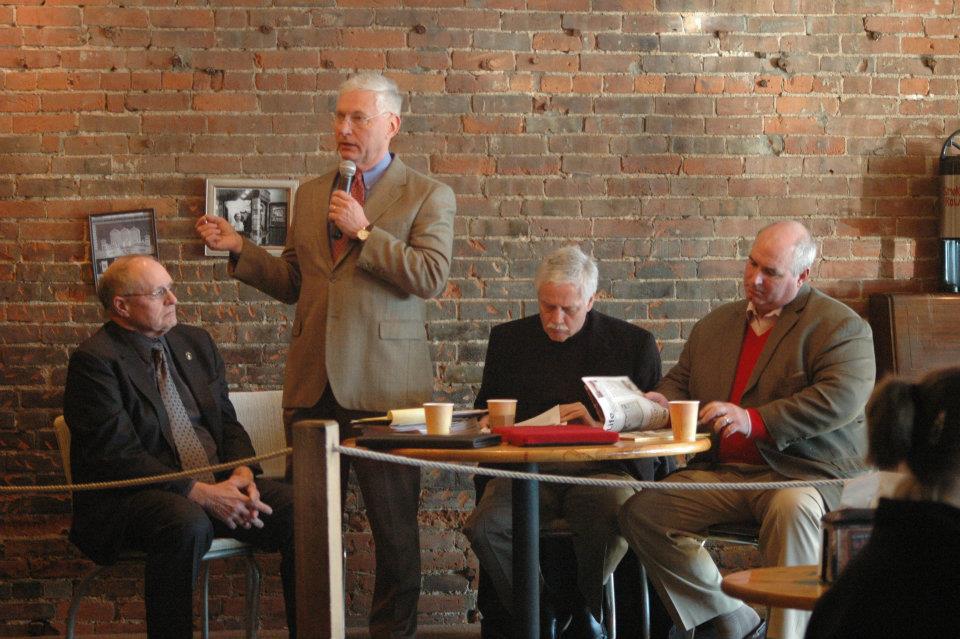 Sen. Tom Rielly at Saturday's Eggs and Issues where they discussed the proposed 10 cent gas tax increase