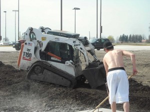 15 Senior Babe Ruth players, along with coaches Eric Stout and Matt Saville, met at the Lacey Recreation Complex Wednesday April 13th to spread mulch, clean dugouts, pick up debris and generally clean and prep the new fields as the opening day gets closer. Sacrificing a day of practice, the team prepared to spend one and a half to two and half hours to help clean up last details of the fields. Eric McGee, a Babe Ruth player for five years, stated “We like the new fields, they are alot nicer!” He continued when asked why he was helping today, ” I want to do my part because these guys built the fields for us so I figure we should help them out.” Matt Saville, also Babe Ruth Board Vice President, said that this was a good group of kids to have involved. “Alot of them knew Charlie and they appreciate everything that has been done.” Eric Stout plans to also bring the youth players out to help assemble bleachers when they arrive in the next week or so.
