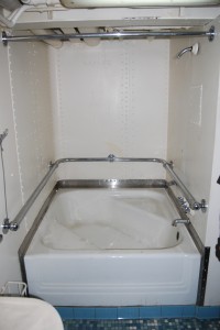 Here it is, the only bath tub on a US Naval Ship. Installed on the USS Iowa for President Franklin Roosevelt when he used the Iowa as the Air Force 1 of his day. (Photo by Pacific Battleship Center)