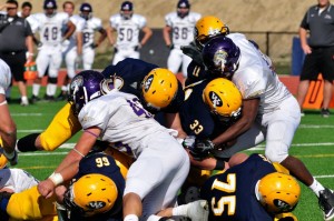 Kerrigan added a 35-yard field goal less than two minutes later and Evan Ressler (So., Cascade, Iowa, Biology) concluded the scoring on a 24-yard run with 4:23 still on the clock. Ressler managed 65 yards on the ground.