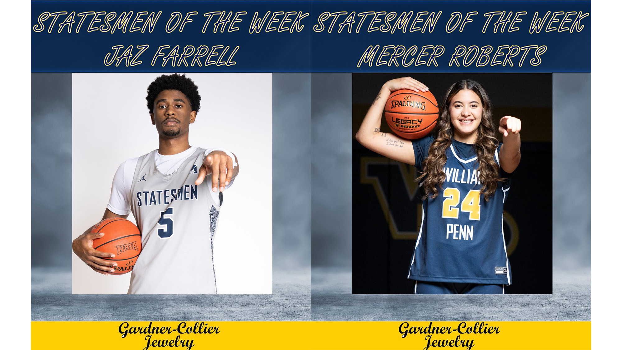 Men’s basketball player Jaz Farrell (Sr., Miramar, Fla., Undecided) and women’s basketball player Mercer Roberts (Sr., Myrtle Beach, S.C., Wellness and Recreation) have been named the Statesmen of the Week for the week of November 13-19, presented by Gardner-Collier Jewelry.