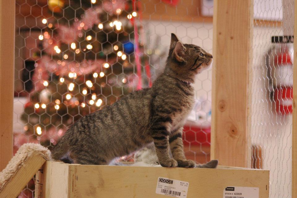 This kitten is seen exploring the new enclosure built to house them at Stephen Memorial Animal Shelter