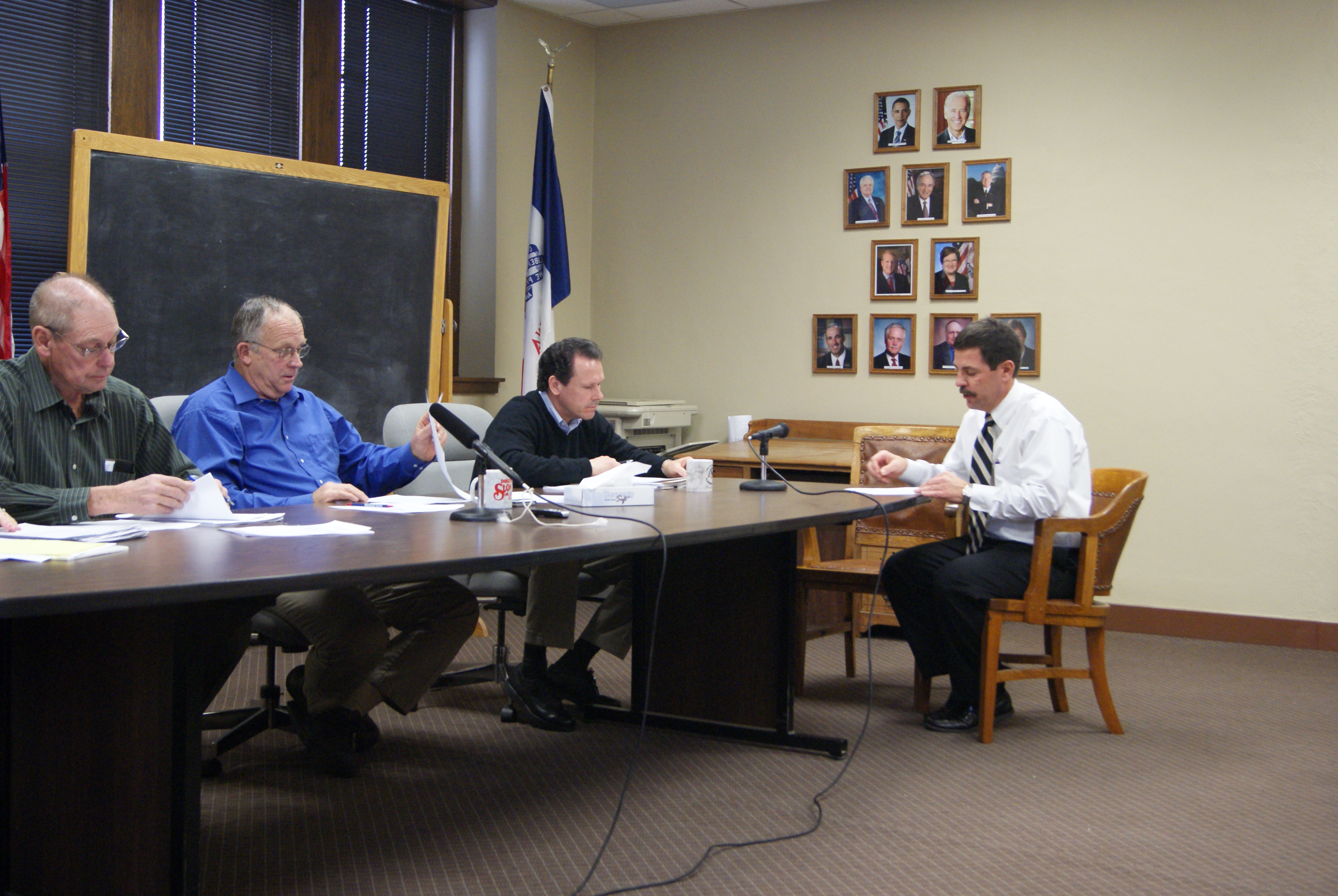 County Supervisors look over documents presented to them by MHP's Jay Christensen at December 20's Supervisor Meeting (photo D.Hubbard)