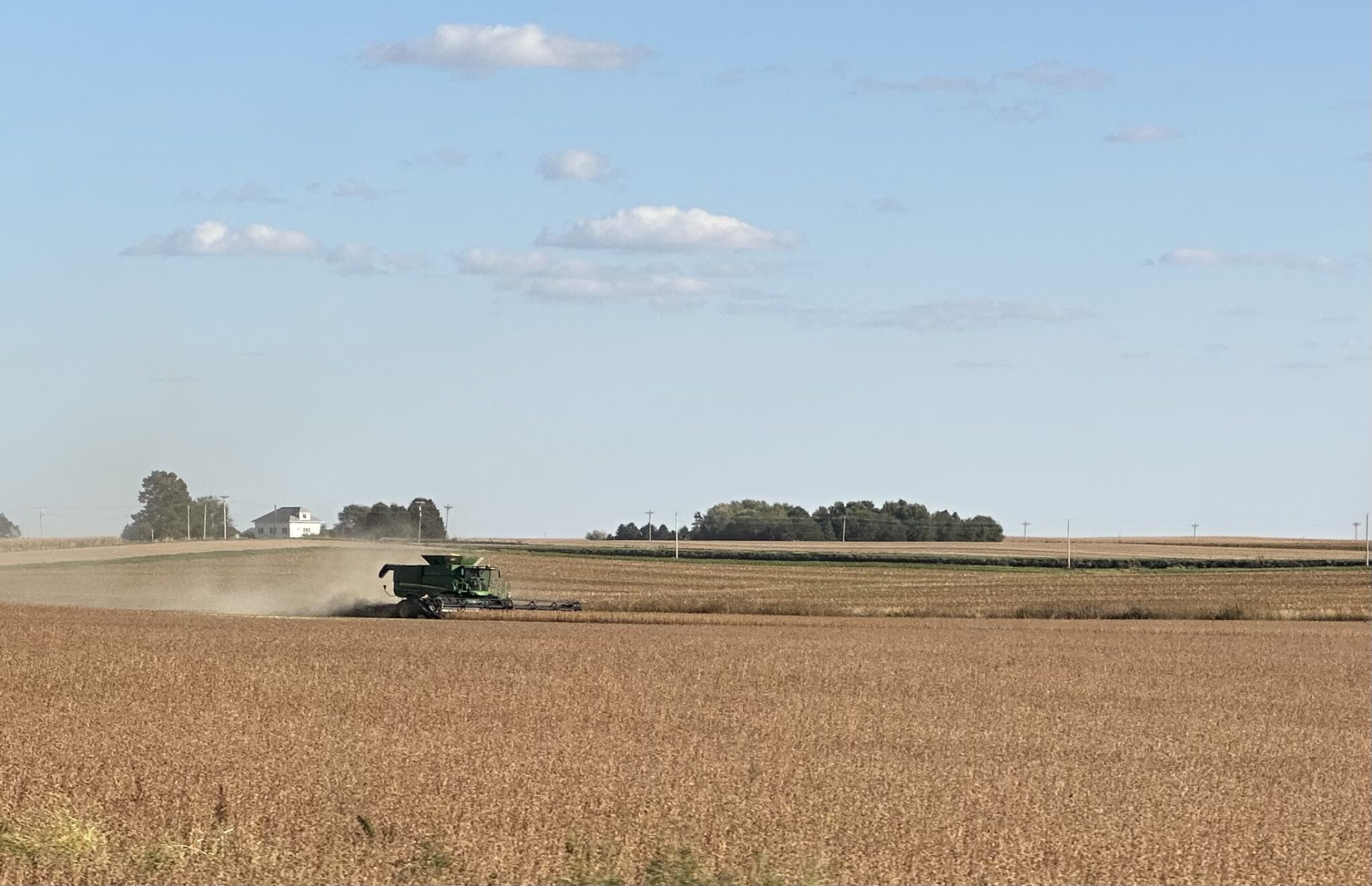 A farmer harvests soybeans Oct. 7, 2025 near Dike, Iowa. (Photo by Cami Koons/Iowa Capital Dispatch)