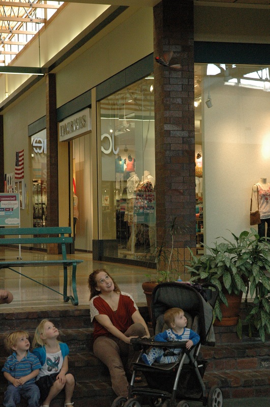 Harry Andrews, of Oskaloosa, was having fun flying his ornithopter around the confines of center court entertaining those sitting on the steps and benches as it playfully moved around the rafters and then buzzed low to get the kids attention as they looked upward at this unconventional aircraft with wide eyes.