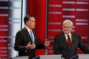 Mitt Romney and Newt Gingrich squared off at the ABC News Republican Presidential debate on December 10, 2011 (credit ABC/Matthew Putney)