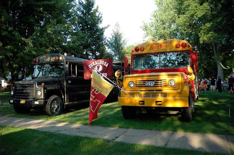 Oh yeah, and about that political thing and football. Mahaska County Supervisor Candidate Tom Rielly held a get together and fundraiser at his residence. It was easy to spot with two former school buses parked out front. One painted up in support of the Iowa State Cyclones, the other was all decked out for the Iowa Hawkeyes.