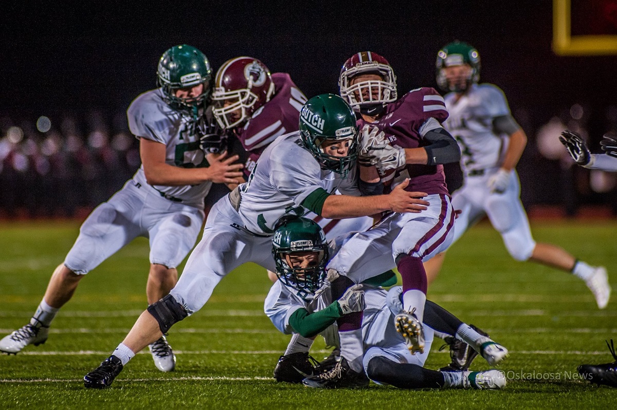 Oskaloosa was without its top rusher in Nate Van Veldhuizen, who was dinged up last week against Ottumwa. “With all his heart, he wanted to be in the football game and wanted to make a difference every play, but the reality was, he wasn’t 100%,” explained Sterner, who consulted with the trainers this past week on Van Veldhuizen’s condition.