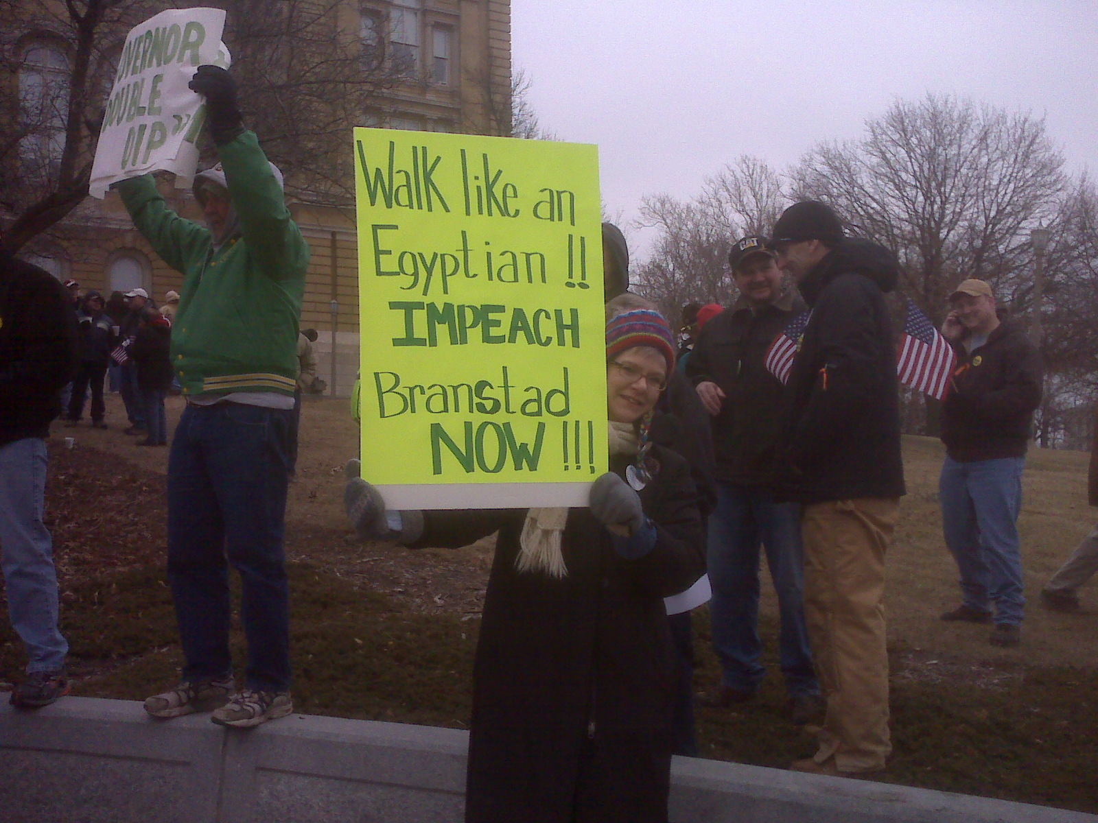 Tea Party members at the Iowa Capitol on February 22nd showing their support for the Governor of Wisconsin (photo courtesy Reg Randau)