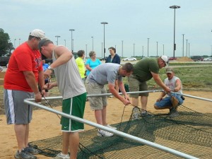 Volunteers from ‘The Group’ help install 3 new batting cages at The Lacey Complex (submitted photo)