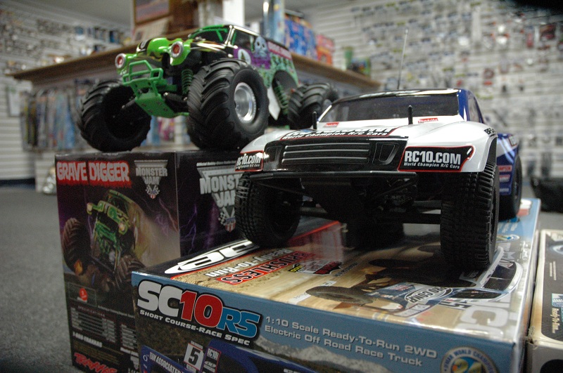 Some RC Cars ready to take advantage of the dirt track recently built behind the building at the Hobby Shack