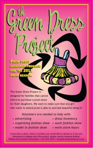 The William Penn Alumni Association is looking for volunteers for their annual green dress project. Volunteers are needed to help with advertising, dress inventory, organizing the fashion show, modeling in the fashion show, working the fashion show and working store hours. According to Amanda Hudnut, Vice President of volunteerism at William Penn, the green dress project is aimed at “families that cannot afford to purchase a prom dress for their daughters.  We want to make sure that any girl that wants to attend prom is able to and looks beautiful doing it.”