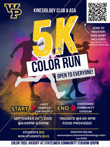 Community members can register online at: wmpenn.edu/event/kinesiology-color-run-2025