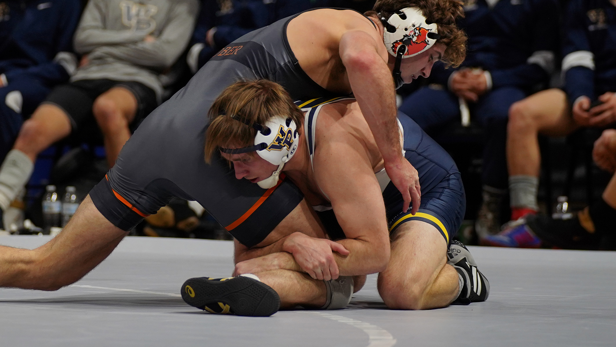 Carson Jensen (Jr., Idaho Falls, Idaho, Exercise Science) then pinned Tyrick Clay in only 43 seconds at 141 pounds, while 149-pounder Quinten Aney (So., Mediapolis, Iowa, Business Management) pushed the advantage to 17-6 with a 19-2 technical fall against Mitchell Huber.