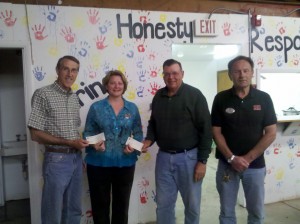 Check presentation picture at Bruce Sedrel Summer Camp - left to right: Lonnie Wilson, Dawn Collins, Don Swim, and Jerry Allen