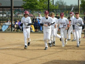 Osky Lightning team cheers as Rian Yates makes home run (submitted photo)